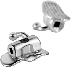 2、粘接型頰面管:近中向弓絲入槽口為導(dǎo)入槽設(shè)計(jì),便于弓絲入槽;牽引鉤末端光滑,減少對(duì)軟組織的刺激;網(wǎng)底凹形弧度設(shè)計(jì),與牙面更貼合。